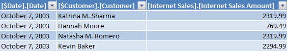 "[Internet Sales].[Internet Sales Amount] as [SalesAmt]